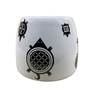 Features southwest styled turtles wrapping around the exterior surface and also on the handle.