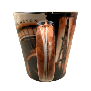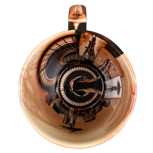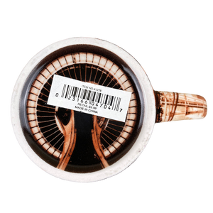 This is a very unique and beautiful mug. it features artwork wrapping around its exterior surface, interior surface, the handle and even on the bottom surface.