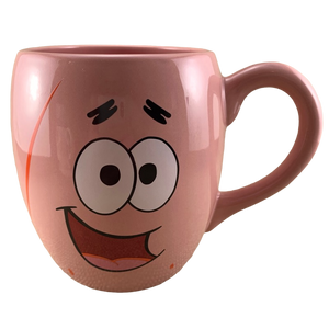 Features Patrick Star's face on its front surface and red dots wrapping around its exterior representing his skin markings.