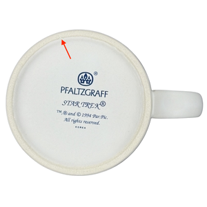 There is a small depression on the bottom rim from the manufacturing process, please see the red arrow pointing to this in the last photo.
