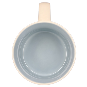 Copy 1: This mug appears unused with its original sticker still on its bottom surface. The sticker shows some wear and is partially detached from the surface on the upper left and right. This mug has no chips, cracks, scratches, stains or crazing.