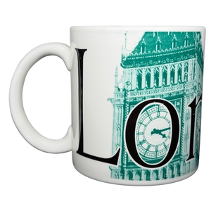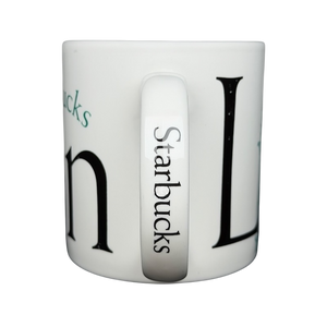This Starbucks City Mug from the Collector Series features a bold London design with oversized black typography and a green architectural illustration highlighting the iconic clock face of Big Ben. The crisp white ceramic body is paired with a comfortable handle and clean interior, while the handle itself is accented with the Starbucks name for added detail. Marked on the base as part of the City Mug Collector Series and dated 2002, this piece was designed exclusively for Starbucks Coffee Company and made in England, making it a classic and highly collectible mug for Starbucks enthusiasts and fans of London-themed memorabilia.