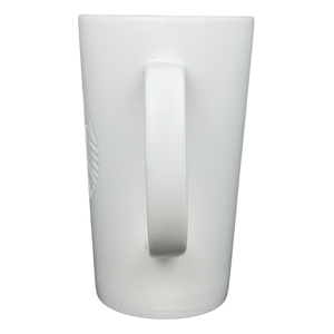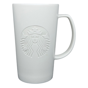 This beautifully minimalist 16-ounce Starbucks mug features a striking matte-white finish and an embossed siren logo that blends seamlessly into the ceramic surface. The raised design gives the classic Starbucks emblem a modern, sculptural feel, offering texture and elegance without the need for printed graphics. Its tall, tapered shape and elongated curved handle create a comfortable, balanced grip, making it ideal for both daily use and display.