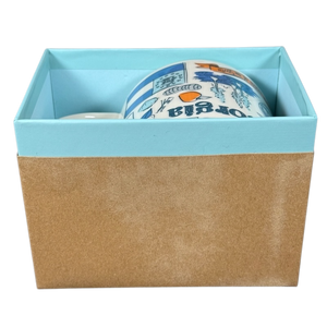 Copy 2: This mug appears unused with its original sticker still on its bottom surface and in its original box. This mug has no chips, cracks, scratches, stains or crazing. The box is in very good condition with some wear present on the brown cover, please see the last photo.