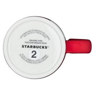 The interior is finished in a crisp glossy white, balancing the vivid exterior while keeping the overall design fresh and inviting. The underside carries the official Starbucks stamp and production details, confirming its authenticity and 2012 release. This mug is microwave and dishwasher safe, making it as functional as it is collectible.