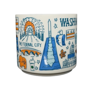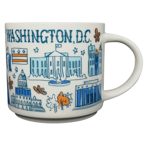 Show your D.C. pride! This authentic Starbucks "Been There Series" mug is a must-have collectible, featuring vibrant, hand-drawn illustrations of iconic Washington, D.C. landmarks and symbols.