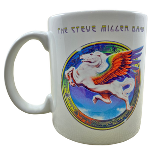 This rare mug features the same artwork on its front and rear surface consisting of the album cover from the 1977 album Book Of Dreams by The Steve Miller Band.