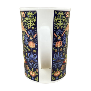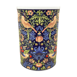 Features beautiful floral and bird artwork wrapping around its exterior surface.