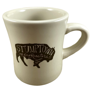 This is a heavy diner style mug that has the following printed image of a bison on its front surface.