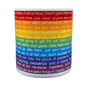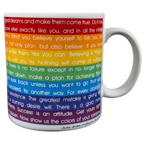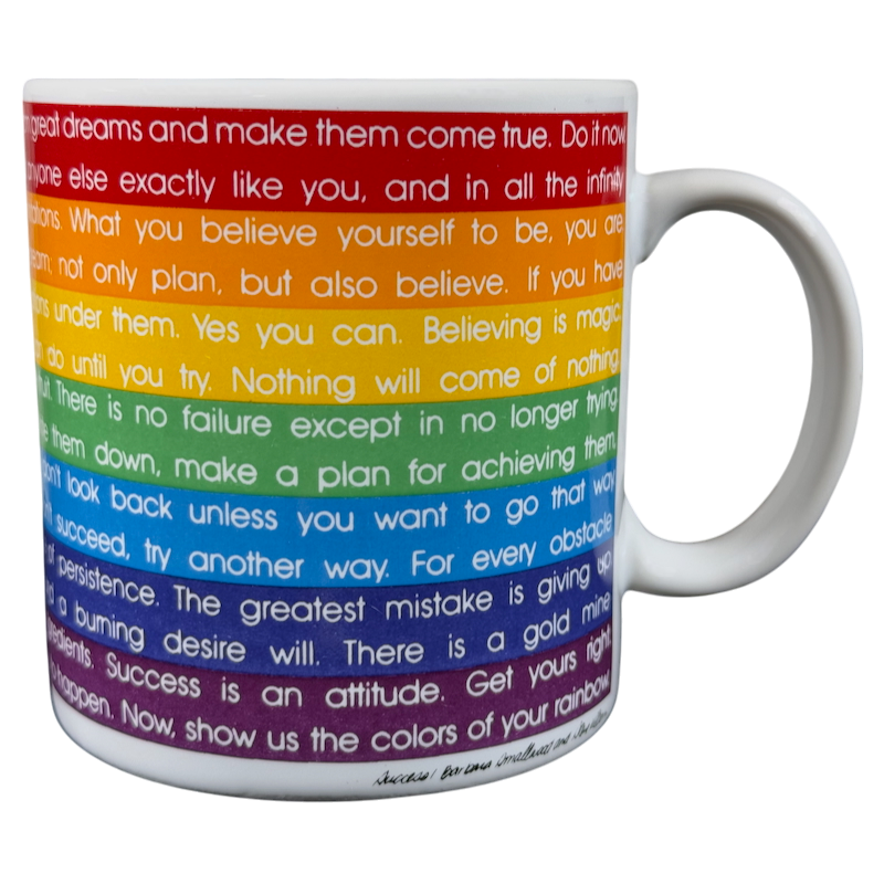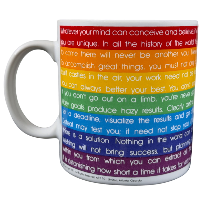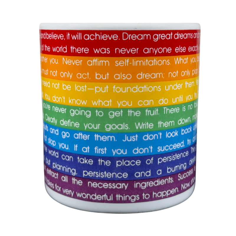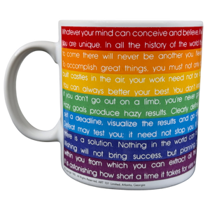 Features artwork wrapping around its exterior surface consisting of words and phrases having to do with success.