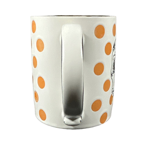 The orange polka dots vary in their appearance with some having more obvious white glaze within and atop them. Please look carefully at the photos.