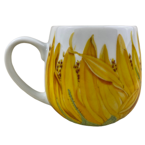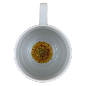 This gorgeous mug features sunflower petals wrapping around its exterior surface. Inside on the bottom surface is an image of a sunflower.