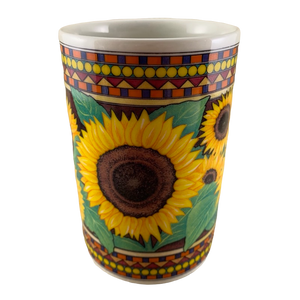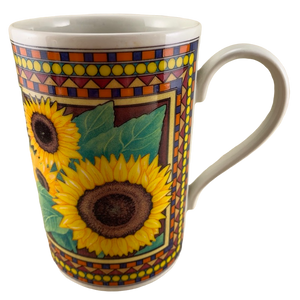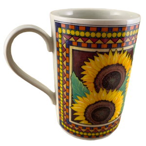 This mug features beautiful sunflowers wrapping around its exterior surface.