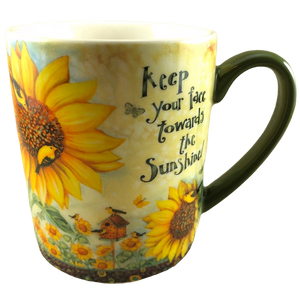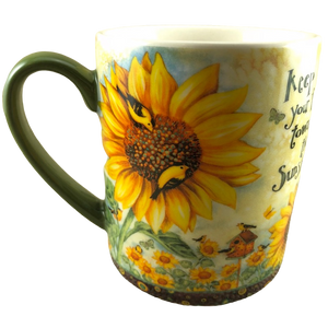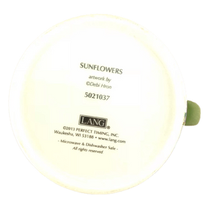 Features beautiful artwork consisting of sunflowers and birds wrapping around its exterior surface.