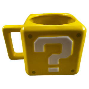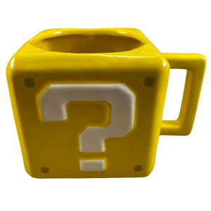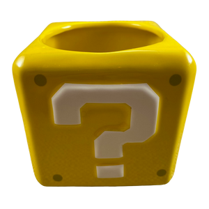 Features a 3D figural design shaped like a question block from Super Mario Bros.