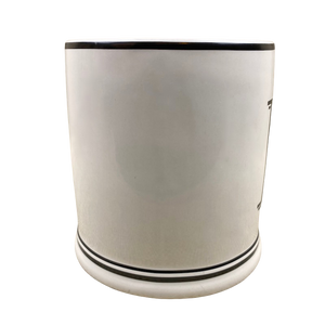 There is accent trim wrapping around the mug on the rim in a single band and the lower edge in a dual band.