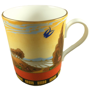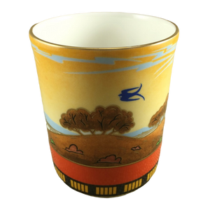 Features beautiful artwork wrapping around its exterior depicting birds flying over a landscape.