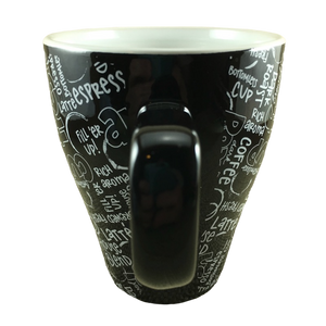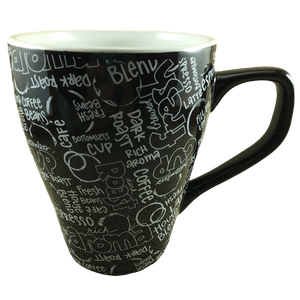 Condition note: there is a watermark on the bottom surface. Being a black mug this one exhibits surface wear and imperfections in a more obvious way than other colors. Overall this mug is in very good condition.