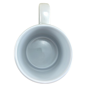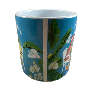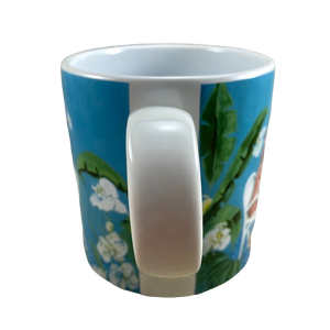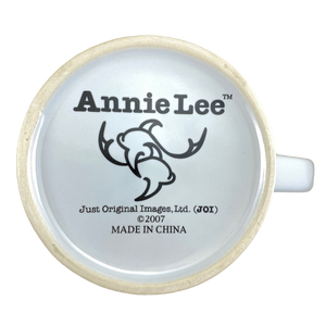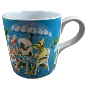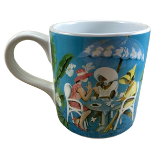 This is an extremely rare and large mug that features the painting "Tea Party" by artist Annie Lee on its front and rear surface.