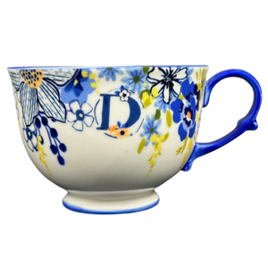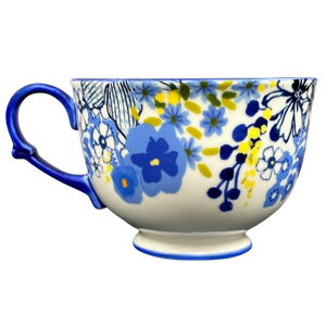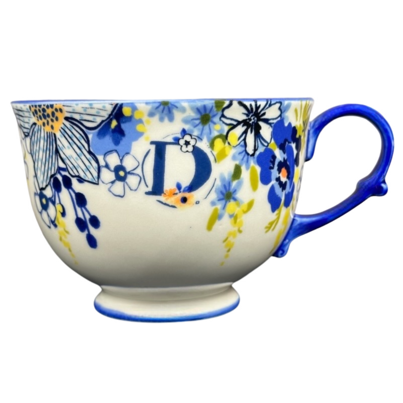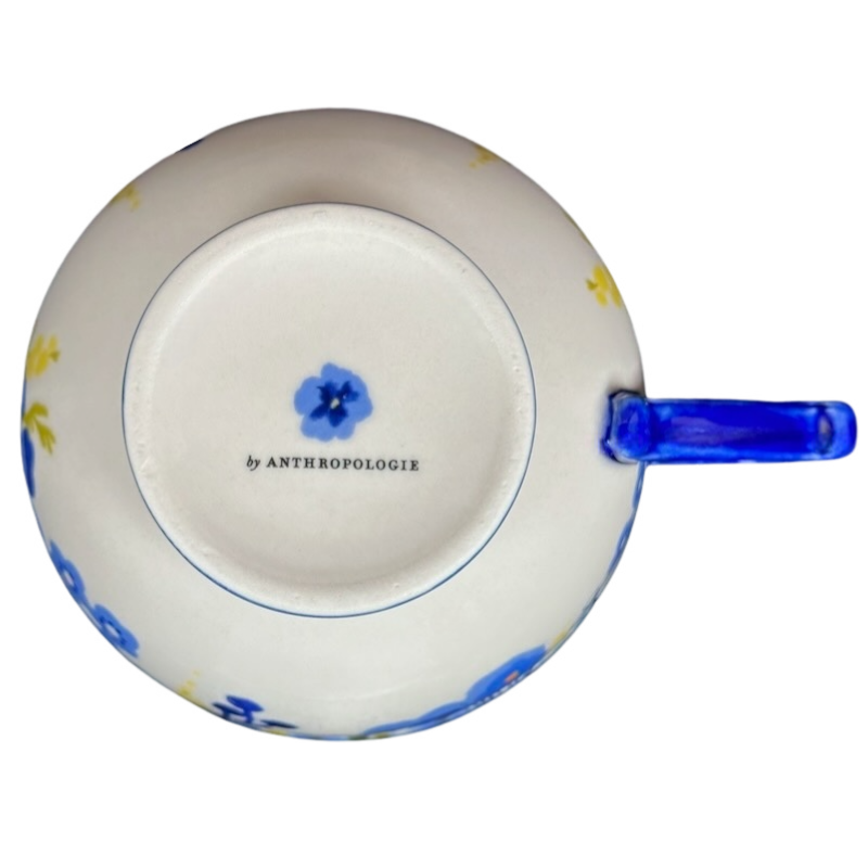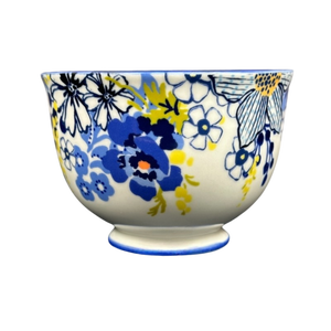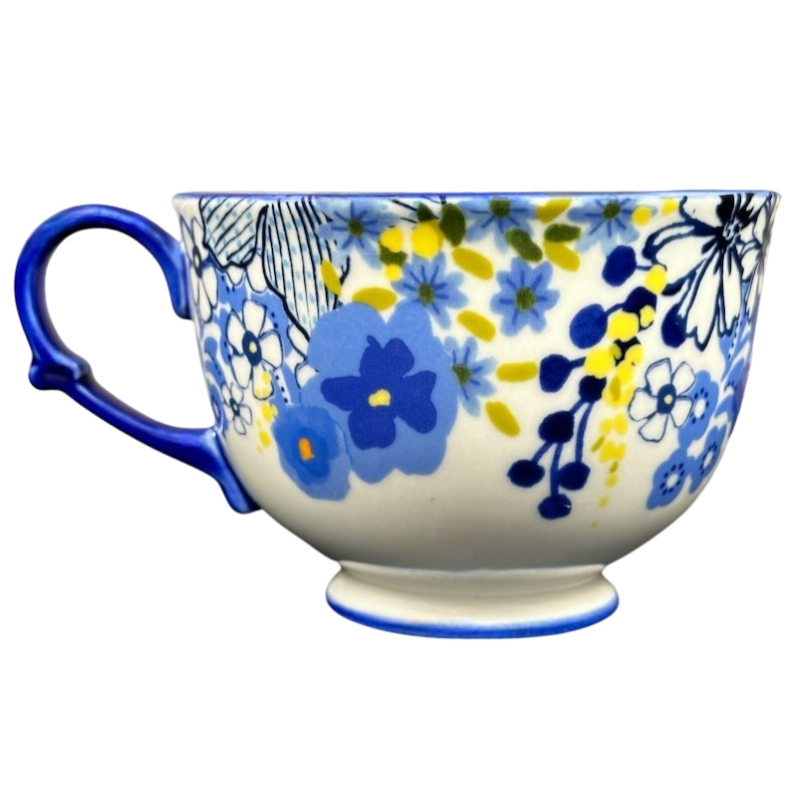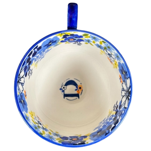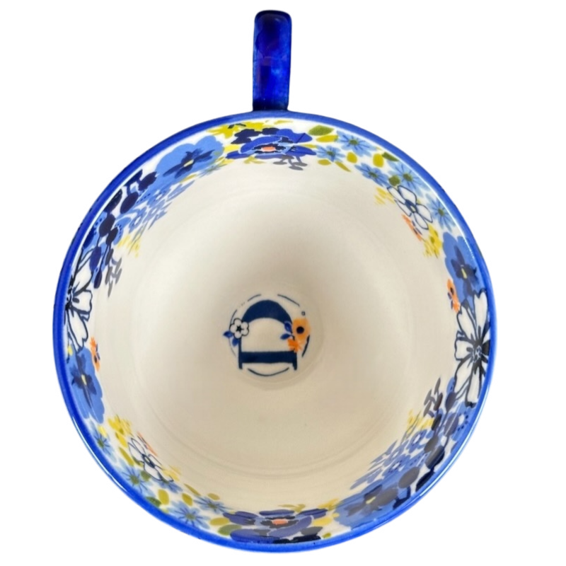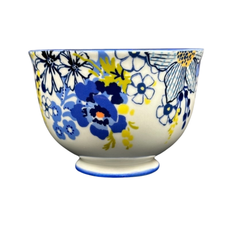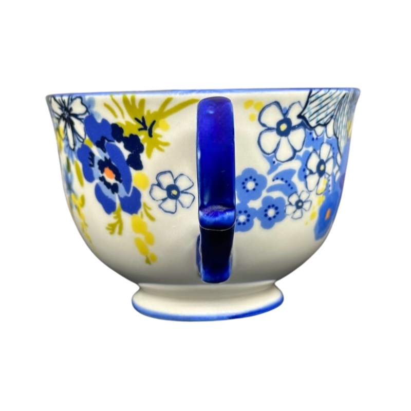 There is matching floral artwork wrapping around the interior surface beneath the rim.