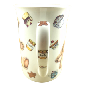 Features artwork wrapping around its exterior surface consisting of teddy bears, honey in jars, cupcakes, teapots and gingerbread men.