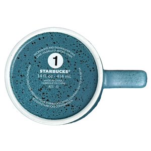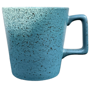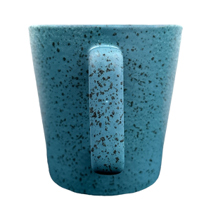 Please note the photos make this mug appear more blue than it actually is. In person it is primarily a teal color with black speckles and a white gradient towards the upper portions.