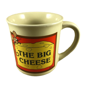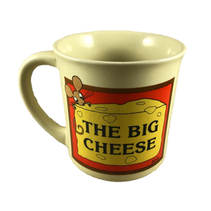 Features identical artwork on the front and back of the mug which depicts a mouse nibbling on a large block of cheese. Inside the block of cheese is printed; "THE BIG CHEESE"