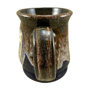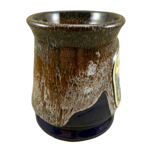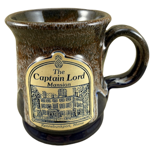 This mug features a gorgeous drip glaze finish and a raised plaque on its front surface with an image of The Captain Lord Mansion.
