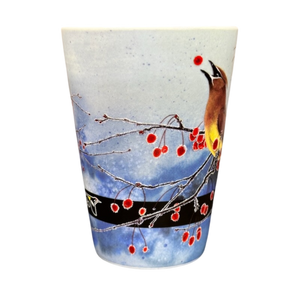 Features the same artwork on its front and rear surface depicting a Cedar Waxwing bird sitting on a branch among berries.