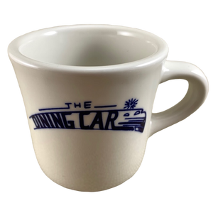 Features an image of a train on its front surface with "THE DINING CAR" superimposed on it.