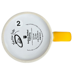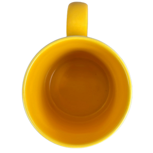 Copy 2: This mug has no chips, cracks, scratches, stains or crazing. There are 2 spots on the interior bottom surface where the yellow paint is absent resulting in white spots. Please see the 5th photo.