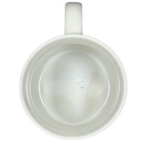 Copy 1: This mug is pre-owned and reconditioned. This mug has no chips, cracks, scratches, stains or crazing. The paint on the interior bottom surface is not applied evenly. This results in the bottom surface not being uniformly white. Please see the fifth photo. There is a tiny raised ceramic bump on the rim, and another on the interior surface wall.