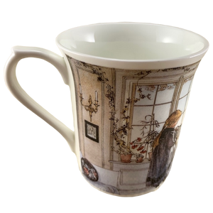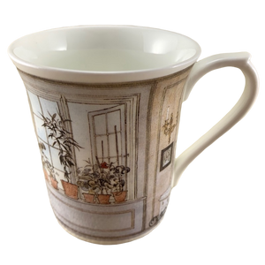 This beautiful mug features colorful artwork depicting "The Garden Window" by Carl Larsson wrapping around its exterior surface.