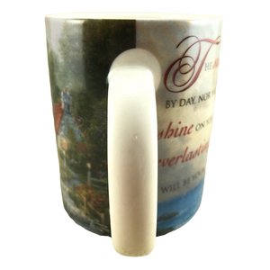 Features a beautiful image of a chapel with a lighthouse next to it in the forest on its front surface.