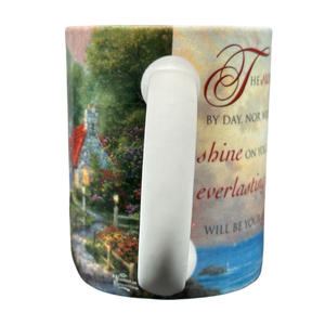 Features a beautiful image of a chapel with a lighthouse next to it in the forest on its front surface.