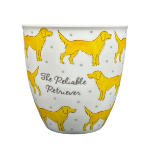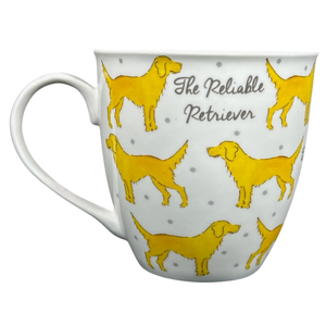 Features multiple images of the same retriever dog wrapping around its exterior surface.