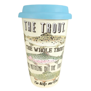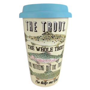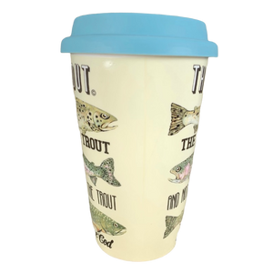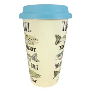 Features the same colorful artwork on its front and rear surface consisting of 3 trout fish.