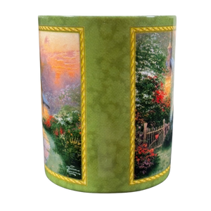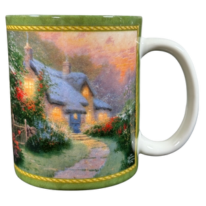 Features the same artwork on its front and rear surface depicting a beautiful image of a house nestled in the countryside.