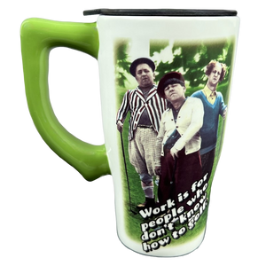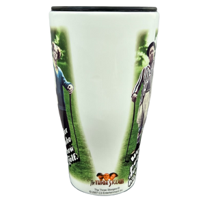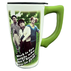 Features the same artwork on its front and rear surface depicting The Three Stooges on a golf course holding golf clubs.