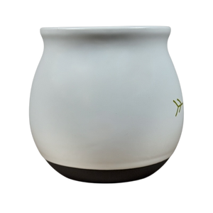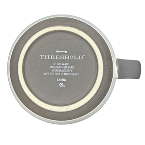 There is a band of gray trim wrapping around the base on the exterior, the handle is finished in a matching gray color.