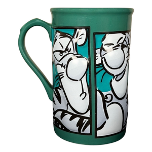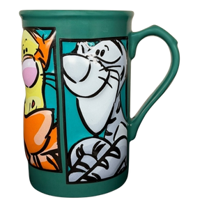 This vibrant green mug features Tigger in a bold comic-panel design, showcasing his playful expressions in bright, high-contrast artwork. Each side displays a different pose, from cheerful to mischievous, all outlined in thick black lines for a fun graphic look. The tall shape and smooth finish make it comfortable to hold, while the vivid teal background enhances the colorful illustrations. Perfect for fans of Winnie the Pooh who love Tigger’s energetic, bouncy personality.