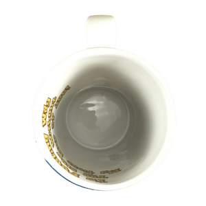 Inside this mug on the rear upper surface is printed, "I'm Feeling Way Too Slow Without My First Cup Of Joe"