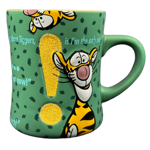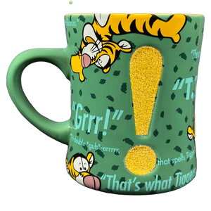 To Tigger's left is a giant exclamation point filled in with orange glitter. There is another identical exclamation point on the rear surface.