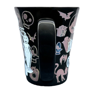 This is a rare heat changing mug that features characters from Tim Burton's The Nightmare Before Christmas on its front surface.