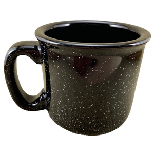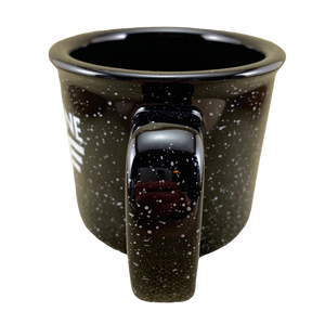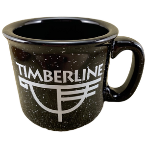 This is a speckled mug with the Timberline Lodge & Ski logo on its front surface.