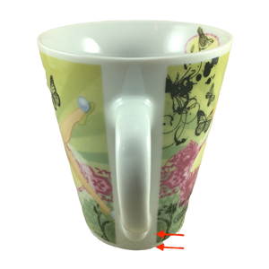 Condition note: there are 2 tiny brown dots on the rear lower surface near the handle.  Please see the red arrows pointing to these in the 2nd photo.