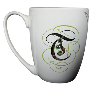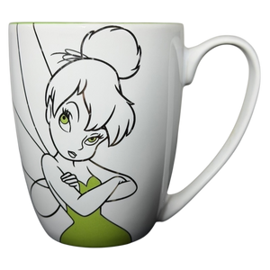 This elegant Tinker Bell ceramic mug features a striking two-sided design that blends charm with a touch of sparkle. One side showcases Tinker Bell in a bold line-art style with vibrant green accents, her expressive pose and bright eyes capturing her trademark attitude and pixie personality. The reverse side highlights a beautifully stylized “T” monogram adorned with swirling green filigree and shimmering green gemstone embellishments that add a magical, jewel-like finish. Inside the mug, “Tinker Bell” is written in a fancy font along the rear upper surface, adding an extra hidden detail for fans to enjoy. With its smooth white surface, curved shape, and comfortable handle, this mug offers both everyday practicality and enchanting display appeal—perfect for Disney lovers and anyone who enjoys a touch of fairy-inspired flair.
