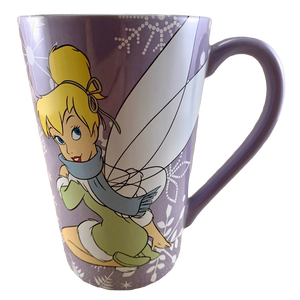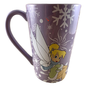 Artwork on this beautiful mug consists of Tinker Bell on its front and rear surface in two different poses with Snowflakes scattered around the rest of the exterior surface.