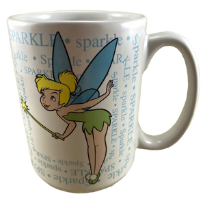 Features an image of Tinker Bell on its front surface with "SPARKLE" and "Sparkle" printed many times surrounding and behind her.