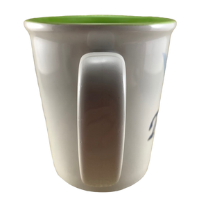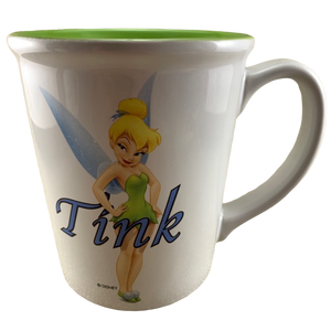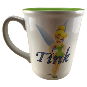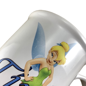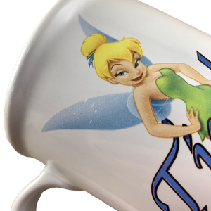This mug features the same artwork on its front and rear surface consisting of an image of Tinker Bell in a green dress with her hands resting on her hips.